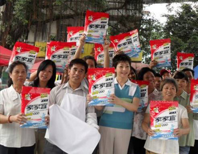 2008年4月,“家家宜”品牌系列產(chǎn)品開始正式投入市場。適時,正值美國次貸危機向全球蔓延,國內(nèi)日化用品受到了嚴重沖擊,一些不堪一擊的洗滌用品生產(chǎn)企業(yè)甚至停產(chǎn)待斃、一命嗚呼。然而,家家宜洗衣粉卻逆市飄紅,一路凱歌——08年下半年度銷量便達到了8000萬元,09年總銷售額高達6.3億元。今年,大約5個月的時間,經(jīng)銷商訂貨升至19億元!