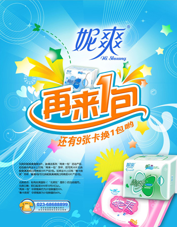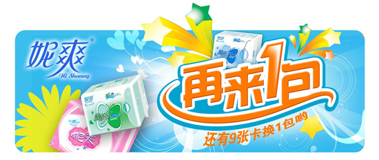 活動(dòng)辦法:凡購買妮爽清清爽18片、新清涼系列“再來一包”活動(dòng)產(chǎn)品,如包裝內(nèi)幸運(yùn)卡上印有“再來一包”字樣,即可憑卡片兌換妮爽清清爽日棉10片產(chǎn)品1包。如幸運(yùn)上印有“集卡換獎(jiǎng)”字樣,集滿9張可兌換妮爽清清爽日棉10片產(chǎn)品1包。