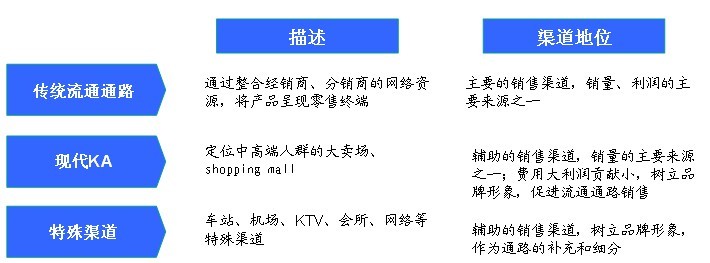 聚焦通路:之后,在將資源投入哪個通路問題上,根據(jù)通路的重要程度和使命確定重點投入的通路類型。寶亦德公司采取“一主兩輔”模式——以傳統(tǒng)流通通路為主,現(xiàn)代KA及特殊渠道為輔。