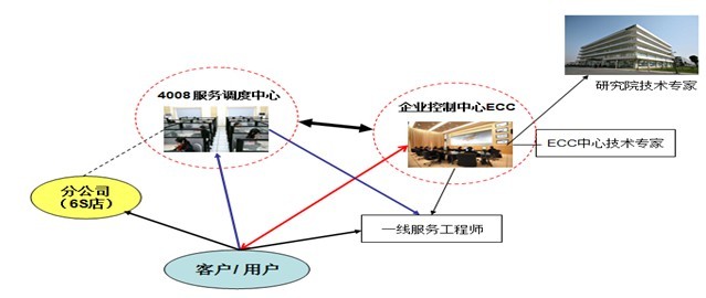 特別要提的一點(diǎn)是,三一花巨資精心打造的企業(yè)控制中心(ECC),由智能設(shè)備管理系統(tǒng)、服務(wù)管理系統(tǒng)、運(yùn)營(yíng)控制平臺(tái)構(gòu)成,運(yùn)用了人工智能GPS、GIS遙感技術(shù)及流媒體等最新技術(shù),改變了業(yè)界客戶直接求助一線工程師的傳統(tǒng)模式,創(chuàng)造性的實(shí)現(xiàn)了天地人合一,一、二、三線服務(wù)工程師和技術(shù)專家的協(xié)調(diào)服務(wù)體系?!疽?jiàn)下圖:三一重工的服務(wù)網(wǎng)絡(luò)架構(gòu)】