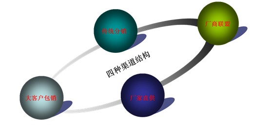 廠家直供:主要是針對政府及行業(yè)性招標采購、“麥德龍”等實施統(tǒng)一采購的連鎖商超、電子商務等特殊通路,實施以公司總部為談判核心的廠家直供渠道模式。其渠道結(jié)構(gòu)為:廠家(→代理商)→最終用戶,其產(chǎn)品系列可單獨設計。