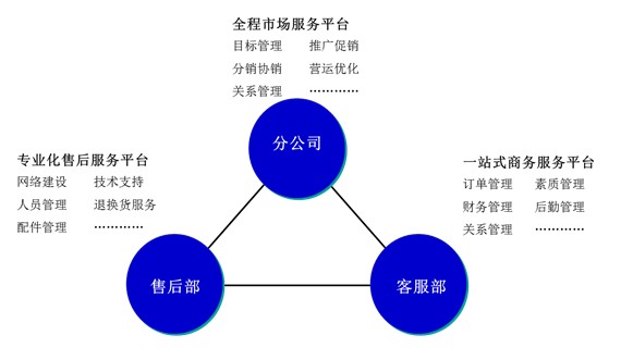 強化溝通,打造三大平臺以塑造歸屬感:通過分公司、客戶關(guān)系管理部、售后服務部三大服務平臺的打造,再輔之公司與經(jīng)銷商之間的持續(xù)信息溝通與互動,塑造“廠家一體”的歸屬感。