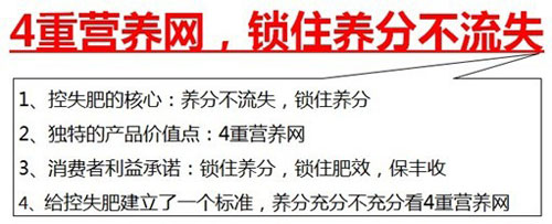 整套營(yíng)銷內(nèi)容:以產(chǎn)品USP為核心的紅四方控失肥價(jià)值體系