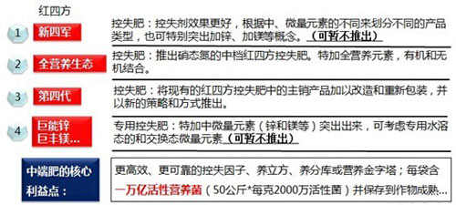 紅四方控釋肥產(chǎn)品規(guī)劃首先要對(duì)控失肥功能提出自己概念,才能可能成為市場(chǎng)的領(lǐng)導(dǎo)者。