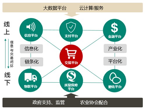 南方略項(xiàng)目組通過訪問國(guó)內(nèi)農(nóng)業(yè)領(lǐng)域頂尖學(xué)者,系統(tǒng)分析農(nóng)業(yè)產(chǎn)業(yè)問題、產(chǎn)業(yè)政策、消費(fèi)市場(chǎng)及發(fā)展趨勢(shì),結(jié)合清華同方以IT信息化為主的多方產(chǎn)業(yè)優(yōu)勢(shì),認(rèn)為同方只有通過互聯(lián)網(wǎng)思維多方連接,建立以生態(tài)農(nóng)產(chǎn)品B2B交易平臺(tái)為核心的開放式綜合性平臺(tái),線上線下有機(jī)緊密結(jié)合,創(chuàng)新農(nóng)產(chǎn)品現(xiàn)代流通服務(wù)體系,為廣大新農(nóng)人及商家或消費(fèi)者提供全方位服務(wù),才能有效落地并打通整體產(chǎn)業(yè)鏈。