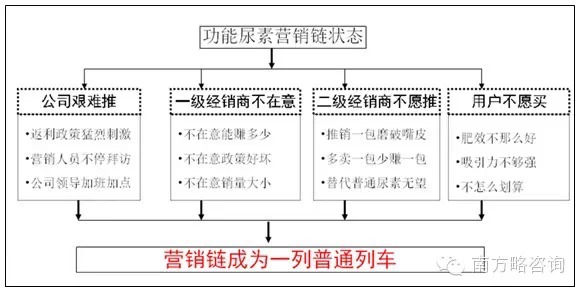 在展開內(nèi)部診斷和外部調(diào)研后,發(fā)現(xiàn),導(dǎo)致目前氮肥銷售不如意的首要原因并非公司關(guān)注的產(chǎn)品賣點和經(jīng)銷商積極性的問題,而是產(chǎn)品區(qū)隔性和營銷模式的問題,在鑒定清楚問題后,展開了一系列動作。