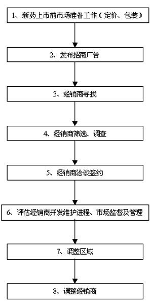 當前,國內(nèi)藥企的營銷部門一般均設(shè)有招商部,招商部通過如圖1所示的流程完成招商銷售工作,地區(qū)經(jīng)銷商主要工作流程如圖2所示: