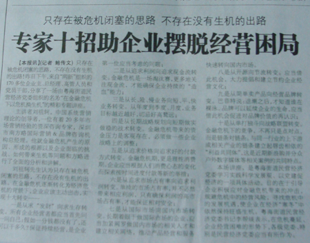 08年12月28日,《深圳特區(qū)報》報道劉祖軻“十招助企業(yè)擺脫經(jīng)營困局”。