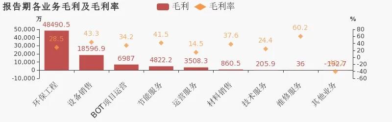 從業(yè)務(wù)結(jié)構(gòu)來看,“環(huán)保工程”是企業(yè)營業(yè)收入的主要來源。具體而言,“環(huán)保工程”營業(yè)收入為17億,營收占比為62.3%,毛利率為28.5%。