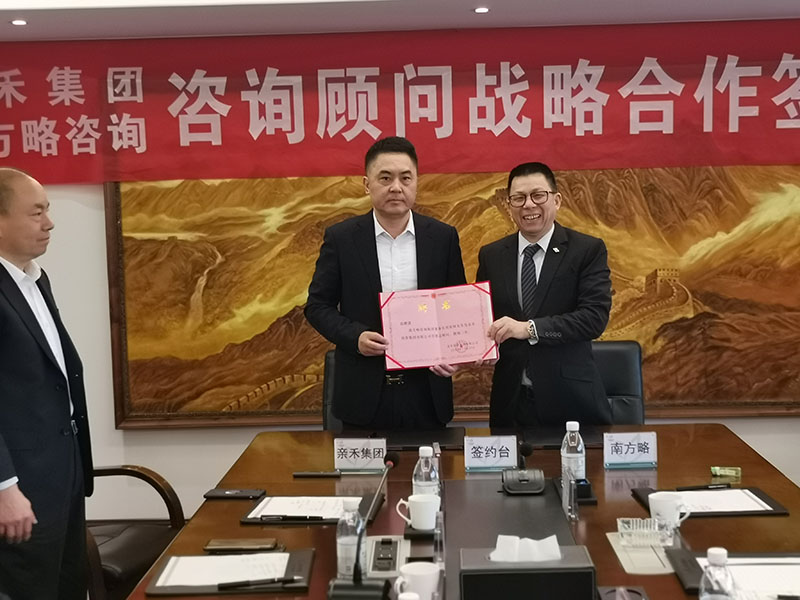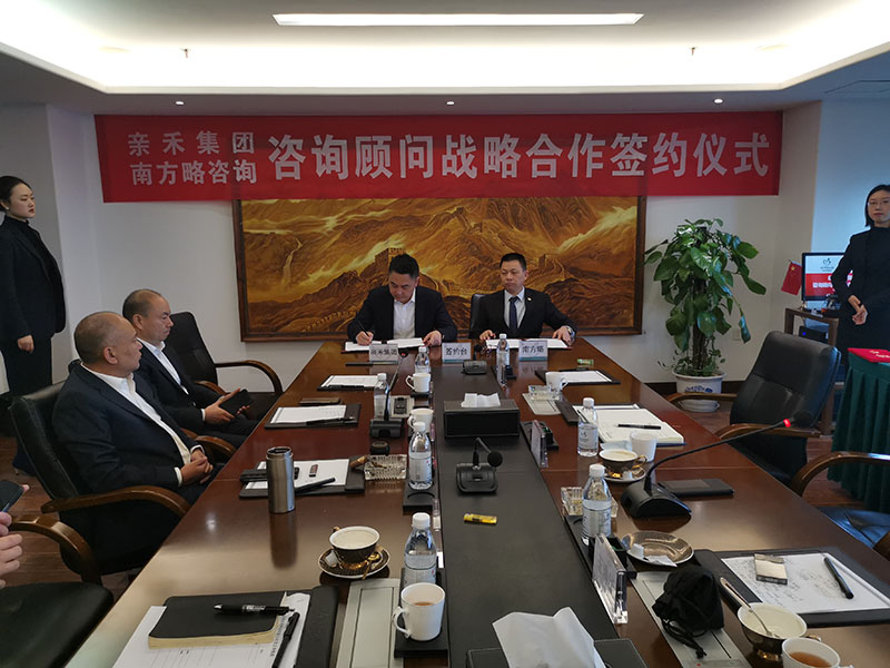 2021年11月20日,為進(jìn)一步推動集團(tuán)高質(zhì)量規(guī)?;l(fā)展戰(zhàn)略,重慶親禾集團(tuán)與南方略咨詢在親禾集團(tuán)總部正式簽訂《咨詢顧問戰(zhàn)略合作協(xié)議》,南方略咨詢董事長劉祖軻老師、副總裁王清華老師與親禾集團(tuán)董事長鄧華先生、副總裁左久林先生等兩家公司的主要領(lǐng)導(dǎo)集中到場,共同參與和見證了此次合作。