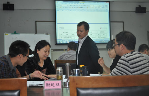學(xué)員與余譚老師認真討論中