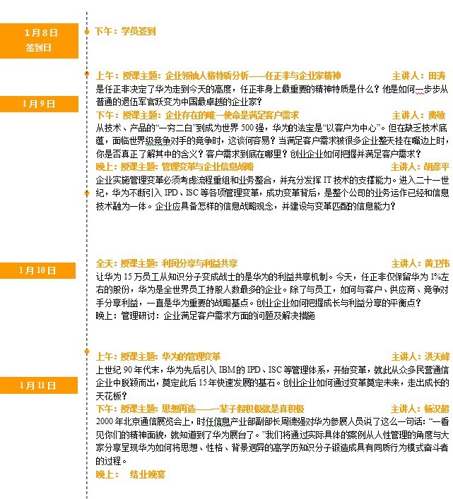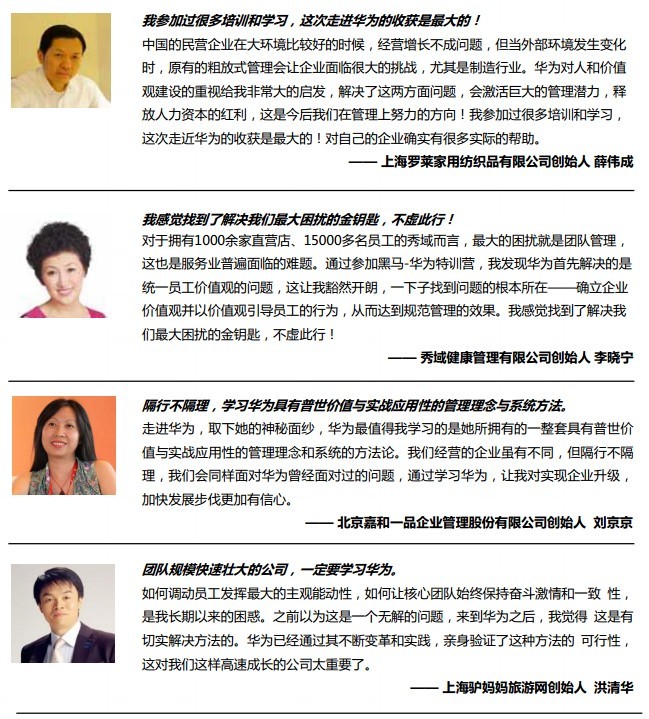 4.有志于將企業(yè)打造成為像華為一樣具有國(guó)際競(jìng)爭(zhēng)力的企業(yè)領(lǐng)袖與高管。